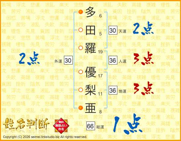 多田羅優梨亜さんの総運は66画の1点!