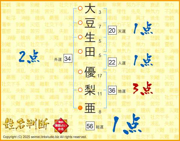 大豆生田優梨亜さんの総運は56画の1点!