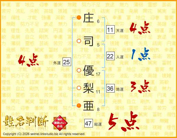 庄司優梨亜さんの総運は47画の5点!