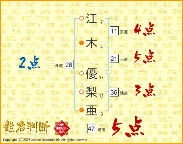 江木優梨亜さんの総運は47画の5点!