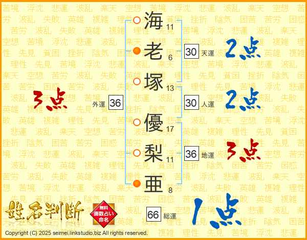 海老塚優梨亜さんの外運は36画の3点!
