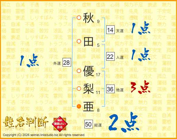 秋田優梨亜さんの人運は22画の1点!