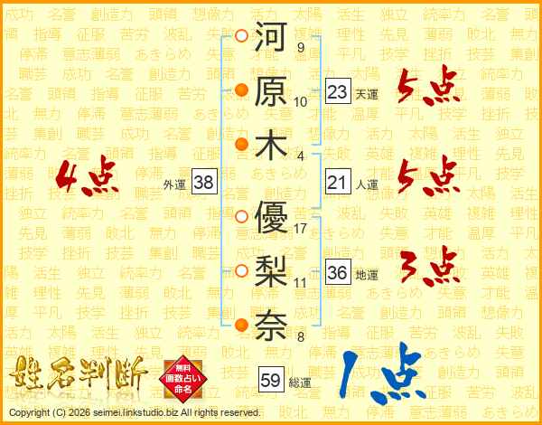 河原木優梨奈さんの外運は38画の4点!