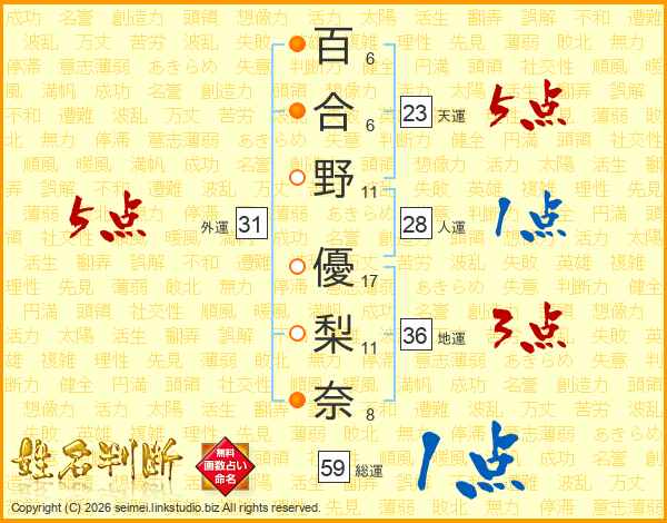 百(6画)合(6画)野(11画) 優(17画)梨(11画)奈(8画)