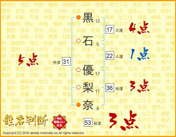 黒石優梨奈さんの総運は53画の3点!