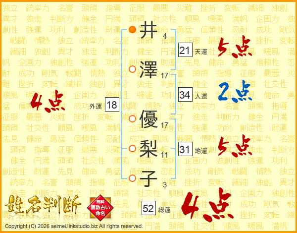 井澤優梨子さんの総運は52画の4点!