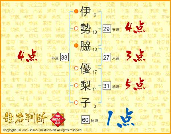伊勢脇優梨子さんの外運は33画の4点!