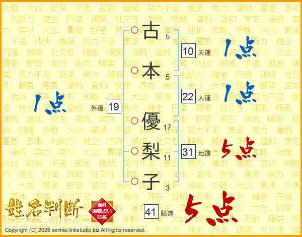古本優梨子さんの地運は31画の5点!