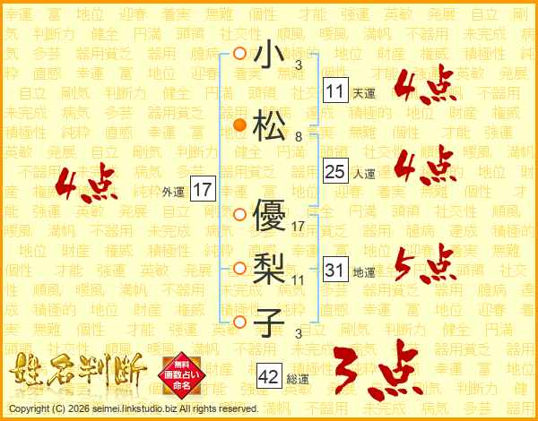 小松優梨子さんの外運は17画の4点!