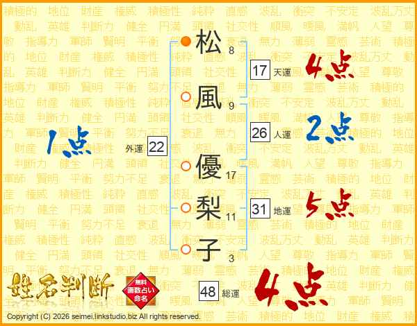 松風優梨子さんの総運は48画の4点!