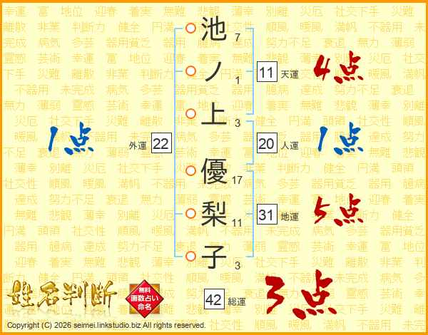 池ノ上優梨子さんの天運は11画の4点!