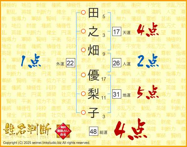 田之畑優梨子さんの天運は17画の4点!
