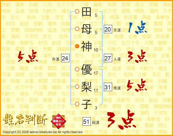 田母神優梨子さんの総運は51画の3点!