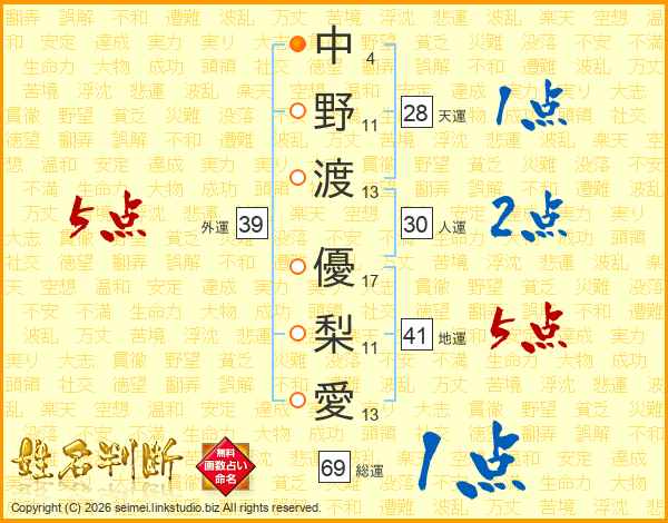 中野渡優梨愛さんの地運は41画の5点!