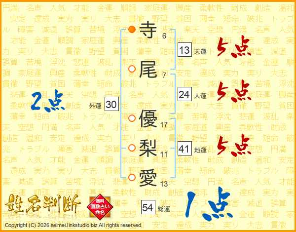 寺尾優梨愛さんの天運は13画の5点!