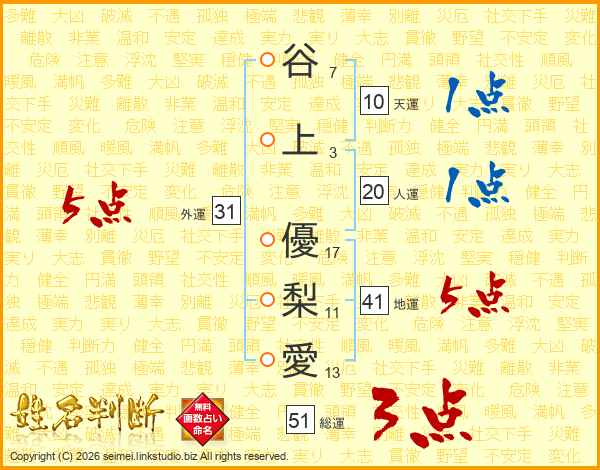 谷上優梨愛さんの外運は31画の5点!