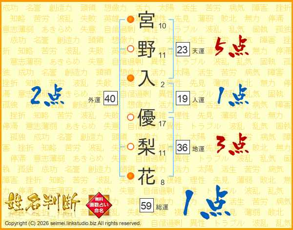 宮野入優梨花さんの総運は59画の1点!