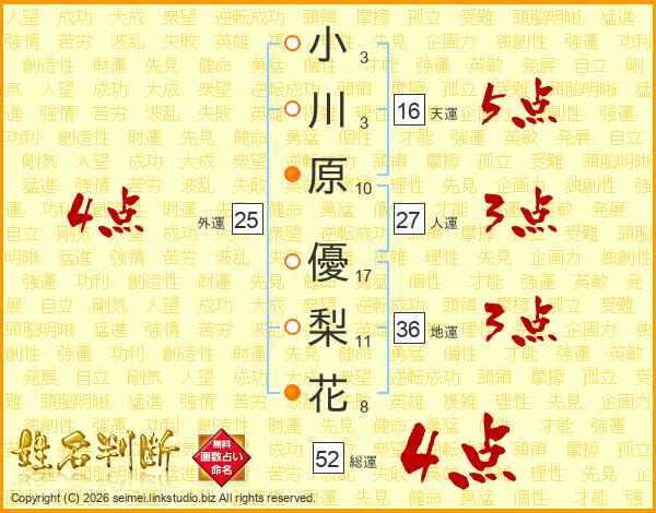 小川原優梨花さんの総運は52画の4点!