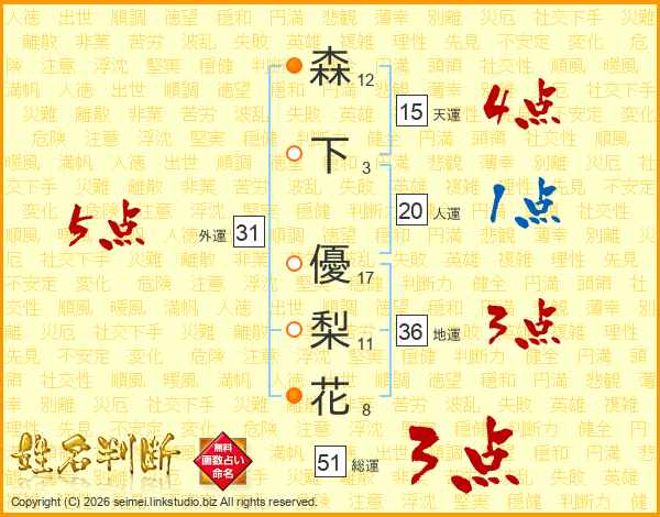 森下優梨花さんの外運は31画の5点!