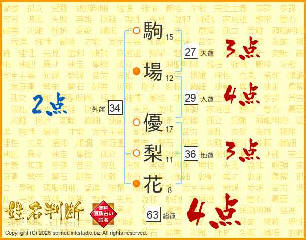 駒場優梨花さんの総運は63画の4点!