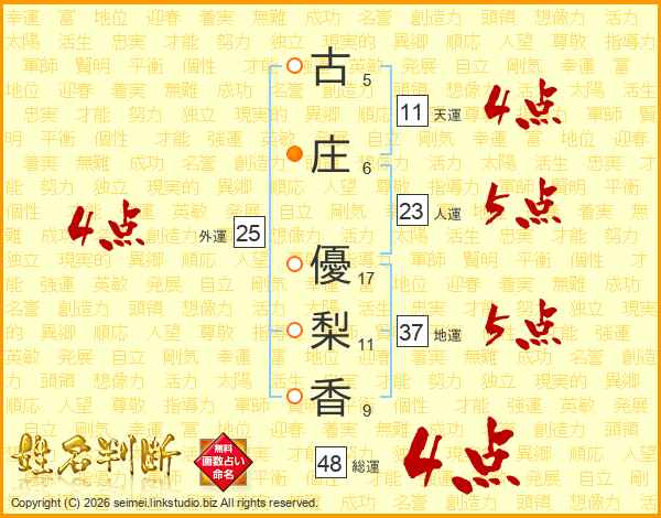 古庄優梨香さんの総運は48画の4点!