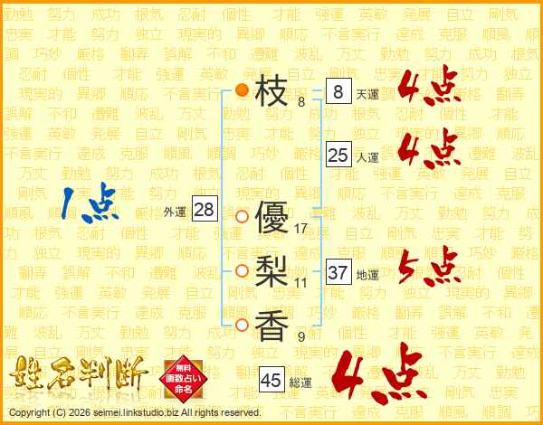 枝優梨香さんの総運は45画の4点!