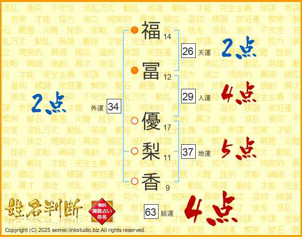福冨優梨香さんの総運は63画の4点!