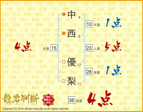 中西優梨さんの総運は38画の4点!