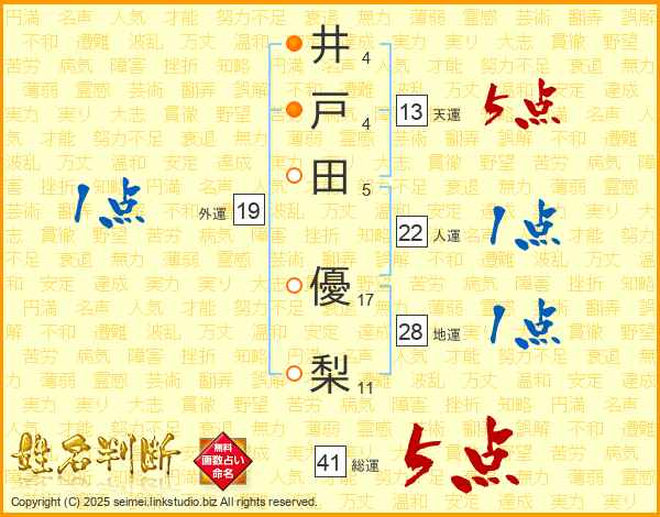 井戸田優梨さんの総運は41画の5点!