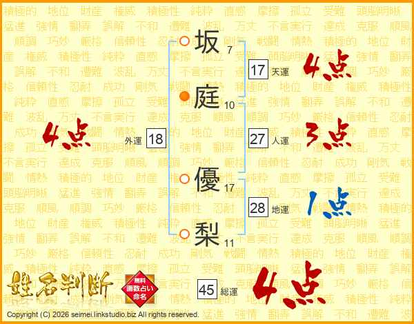 坂庭優梨さんの総運は45画の4点!