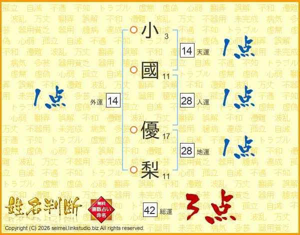 小國優梨さんの外運は14画の1点!