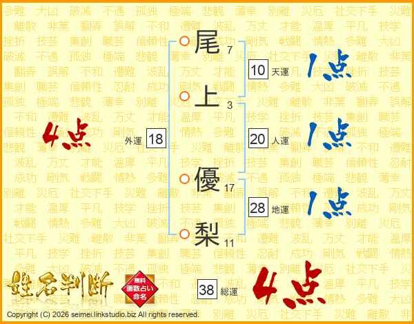 尾上優梨さんの総運は38画の4点!
