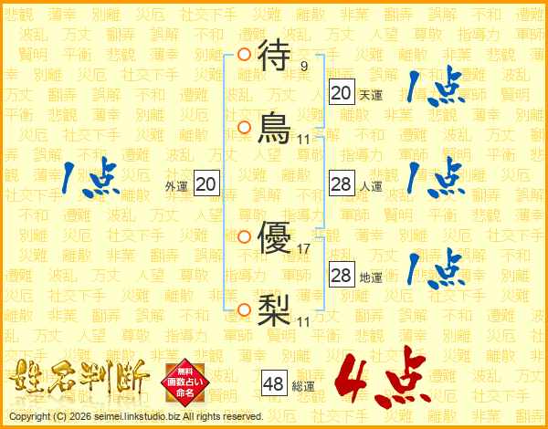 待鳥優梨さんの総運は48画の4点!
