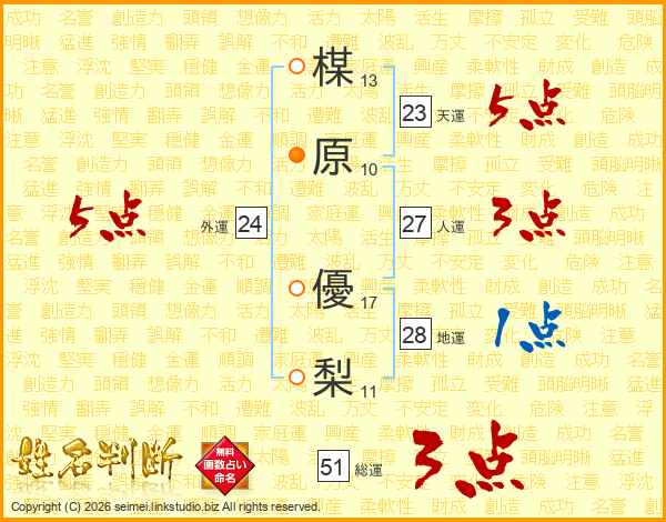 楳原優梨さんの総運は51画の3点!