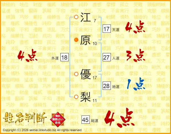 江原優梨さんの総運は45画の4点!
