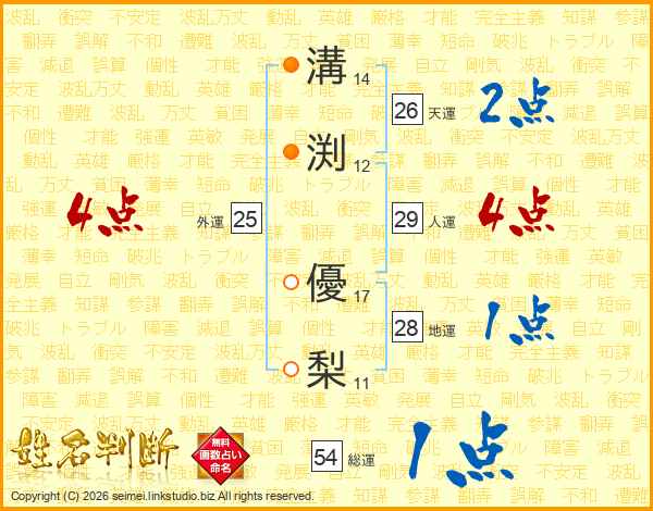 溝渕優梨さんの天運は26画の2点!