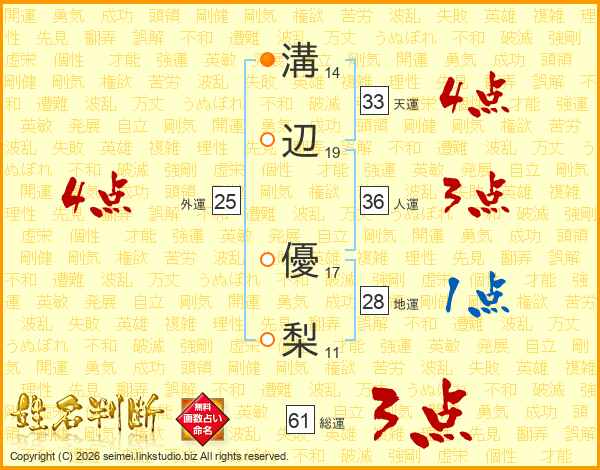溝辺優梨さんの天運は33画の4点!