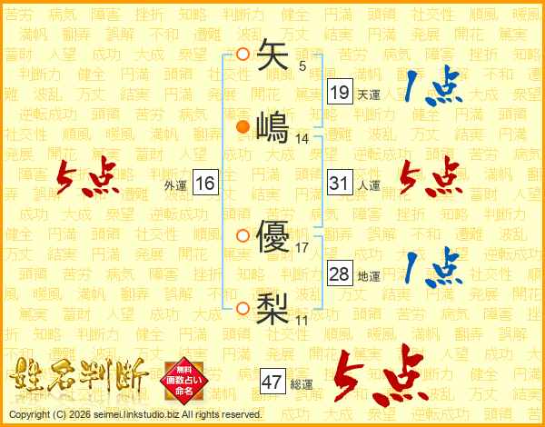 矢嶋優梨さんの人運は31画の5点!