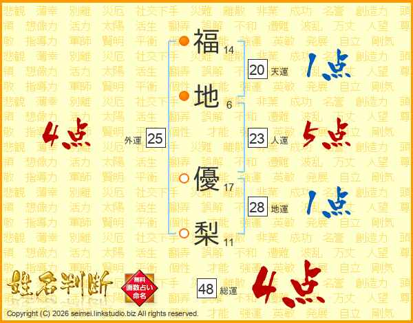 福地優梨さんの総運は48画の4点!