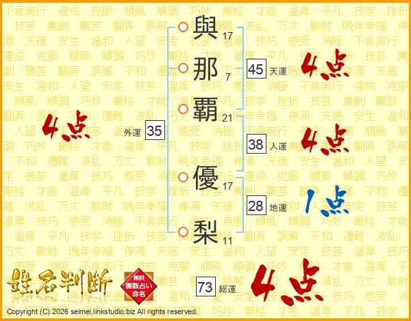 與那覇優梨さんの天運は45画の4点!