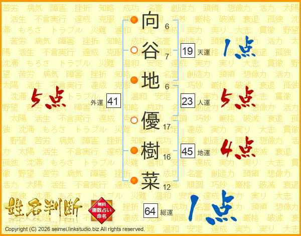 向谷地優樹菜さんの総運は64画の1点!