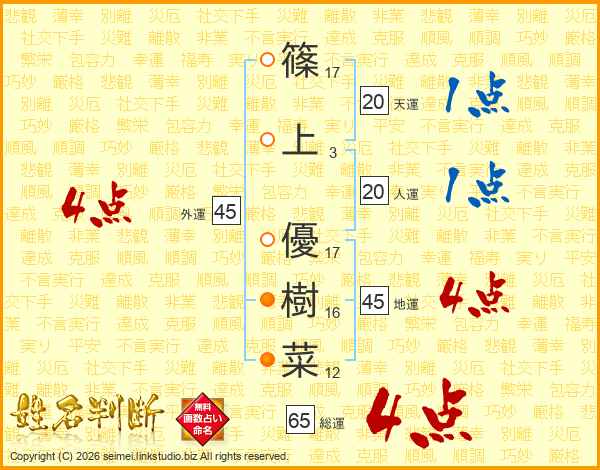 篠上優樹菜さんの総運は65画の4点!