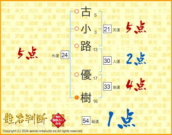 古小路優樹さんの総運は54画の1点!