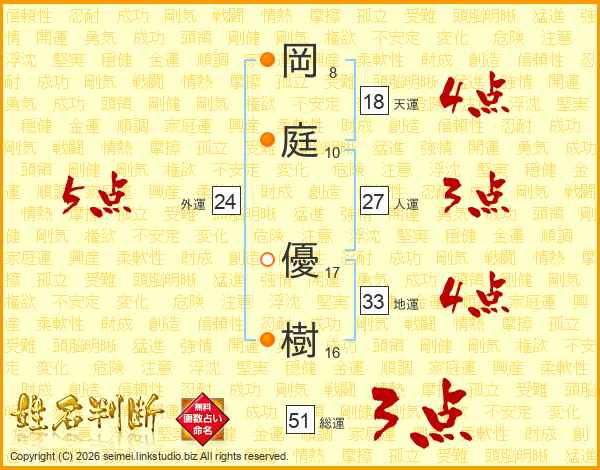 岡庭優樹さんの地運は33画の4点!