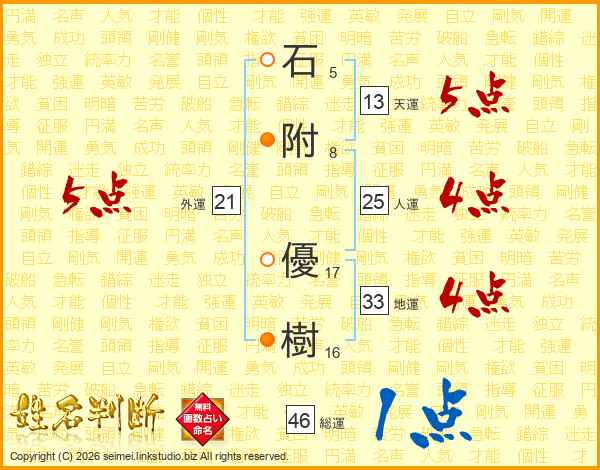 石附優樹さんの天運は13画の5点!