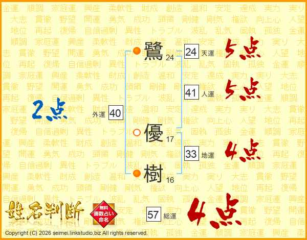 鷺優樹さんの総運は57画の4点!