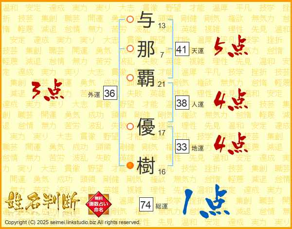 与那覇優樹さんの天運は41画の5点!