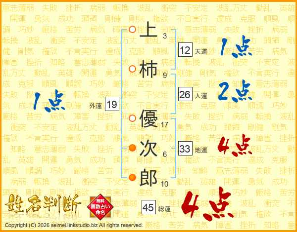 上柿優次郎さんの総運は45画の4点!