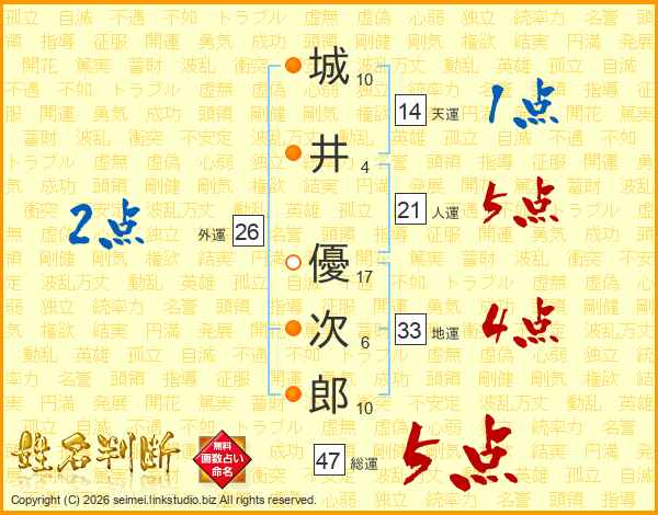 城井優次郎さんの総運は47画の5点!