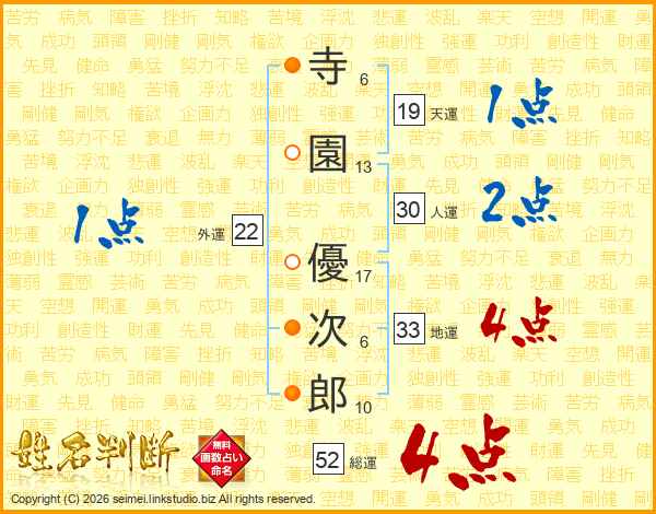 寺園優次郎さんの総運は52画の4点!